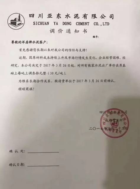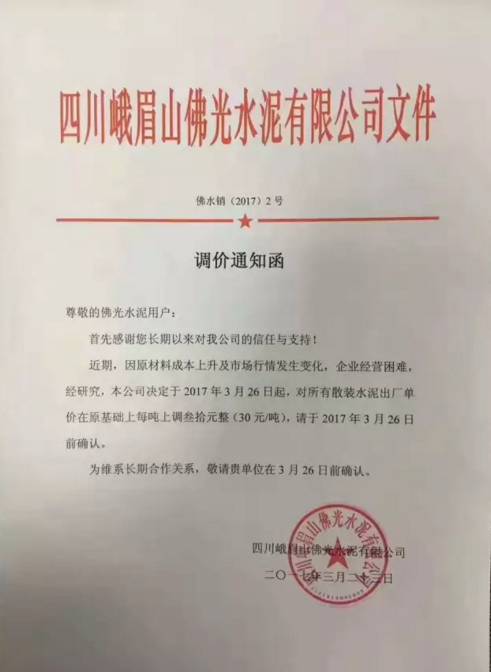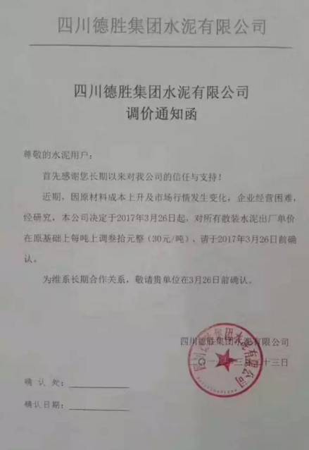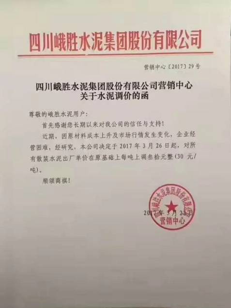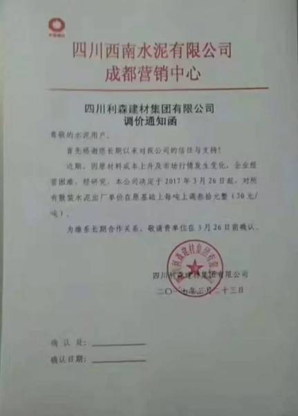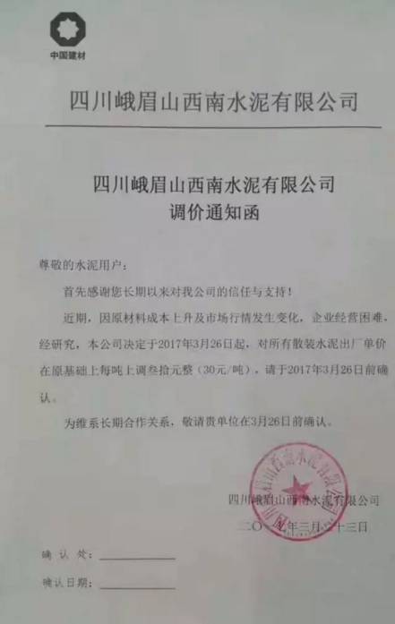 四川的砼行请注意了!这7家水泥企业同时提价!