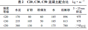 Ⅱ级粉煤灰细度为19%,需水比为103%,烧失量为4.3%。矿粉S95矿粉,比表面积为420㎡/kg,流动度比为97%, 28d活性指数为101%。