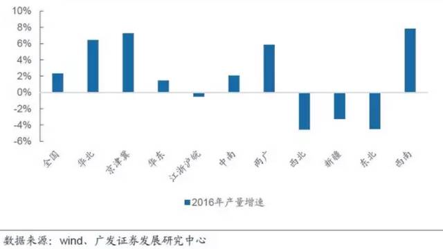 根据2016年各区域水泥产量的统计,京津冀地区的人均水泥产量只相当于江浙沪地区的50%、广东省的70%左右,增长空间巨大。