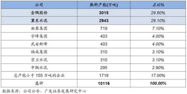 纵观京津冀全局,包含金隅冀东,区域内前几家大型水泥集团的产能超过80%,作为具有严重区域销售属性的产品,水泥供方的价格主动权不言而喻。