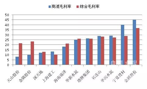 图2:各企业2016年商混业务毛利率与公司整体毛利率水平比较(%)