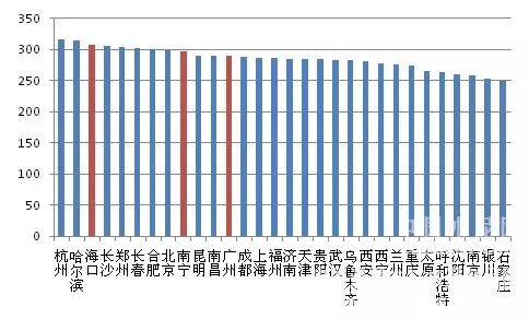 图1:2016年全国各地C30商混市场均价比较(元/方)