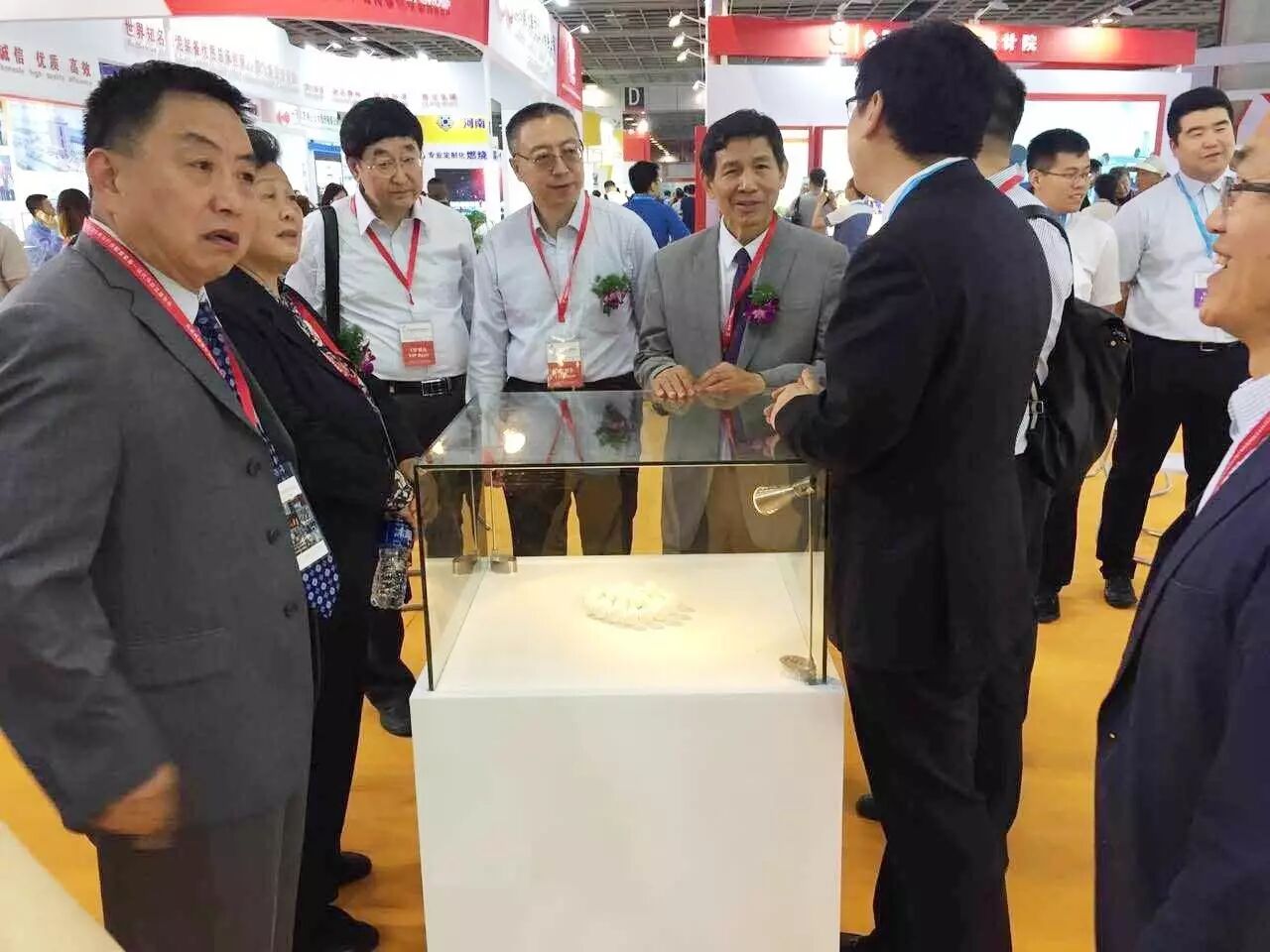 展会开幕当天,以中国建材联合会乔龙德会长为首的领导代表团到达展位,认真聆听了展区工作人员关于“金石+基业长青”牌陶瓷研磨体的介绍,并提出了具有建设性意义的指导。
