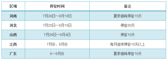 停窑 | 夏季错峰生产第二阶段停窑时间表火热出炉!