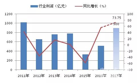 图11:2011-2017年水泥行业利润增长情况及预测