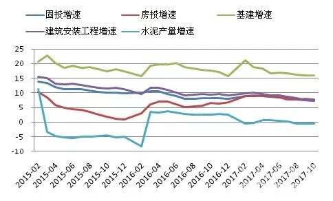 图2:2015-2017年投资增速对水泥需求的支撑情况(%)