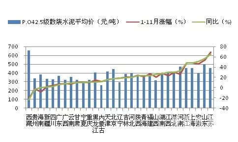 图10:11月30日各省水泥价格及涨幅