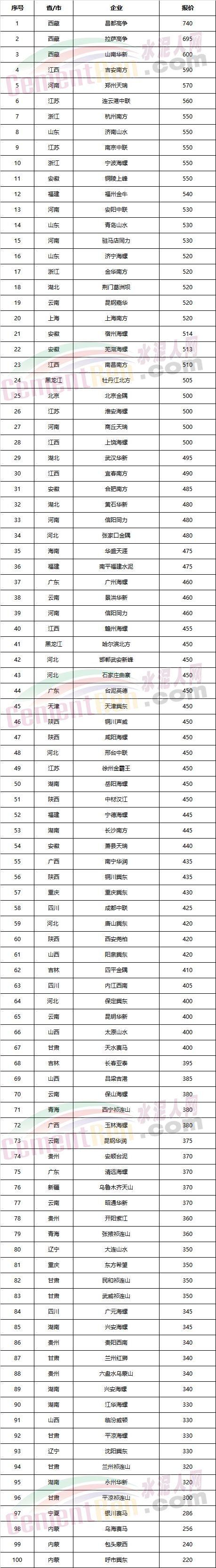 2018年开年水泥价格依然延续了2017年的涨势,涨价函漫天飞舞。回顾2017年,水泥行业全年利润有望达到900亿元。水泥企业赚钱赚的可都有点手抽筋了。在去年的一片涨声中,哪些地区的水泥价格坐上了头把交椅呢?水泥人网整理了100个地区企业PO42.5散装水泥的出厂报价如下:
