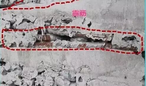 5.钢筋外侧保护层不够。