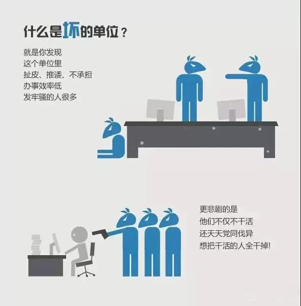 怎么评判一个单位是“好”还是“坏”?好单位里牛人很多,却比你更谦卑、也更努力,你不努力都不好意思呆下去!坏单位里,扯皮、推诿、不承担,同事们不仅不干活,还天天党同伐异、得过且过生存。